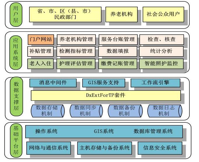 高齡津貼發放管理、居家養老業務監管,社區養老業務監管,機構養老業務監管、養老服務機構視頻聯網監控、養老服務大數據決策分析等。